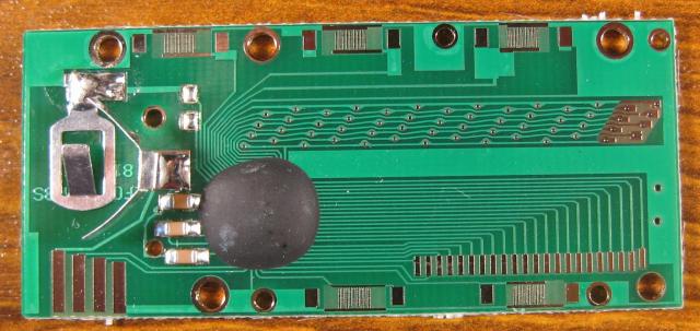 For comparison, photos of a cheap digital caliper. The claimed resolution is 0.1 mm, and on the pcb there are around 16 tracks in 10 mm.