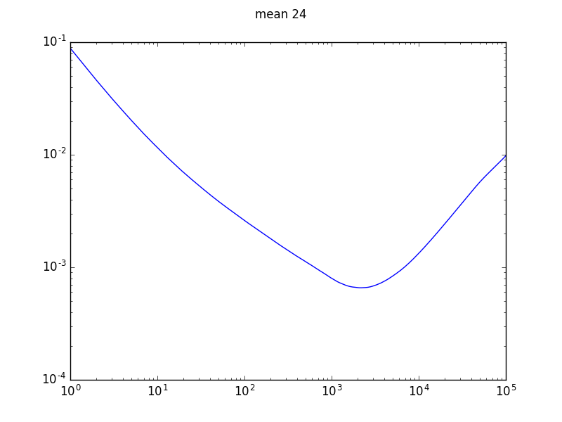 It is possible to derive information from the plot of Allan deviation by looking at the gradient (see graphic 5 in the previous set). It is common for low time values to be dominated by quantisation noise and high values by frequency drift. The best reference I found for interpreting plots is [27]. The modified Allan deviation allows distinguishing quantisation noise from white phase noise, this is shown in graphic 6 in the previous set.