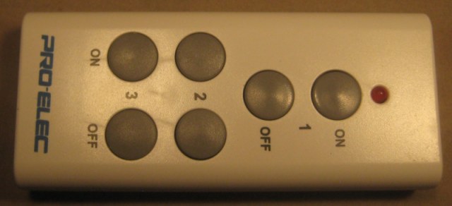 Anyway I bought a pack of three PEL00551 and one controller from CPC for around £16 including VAT. They are well made and work nicely. Probably they would be worth it for the components, three good 433 Mhz receivers and one transmitter.